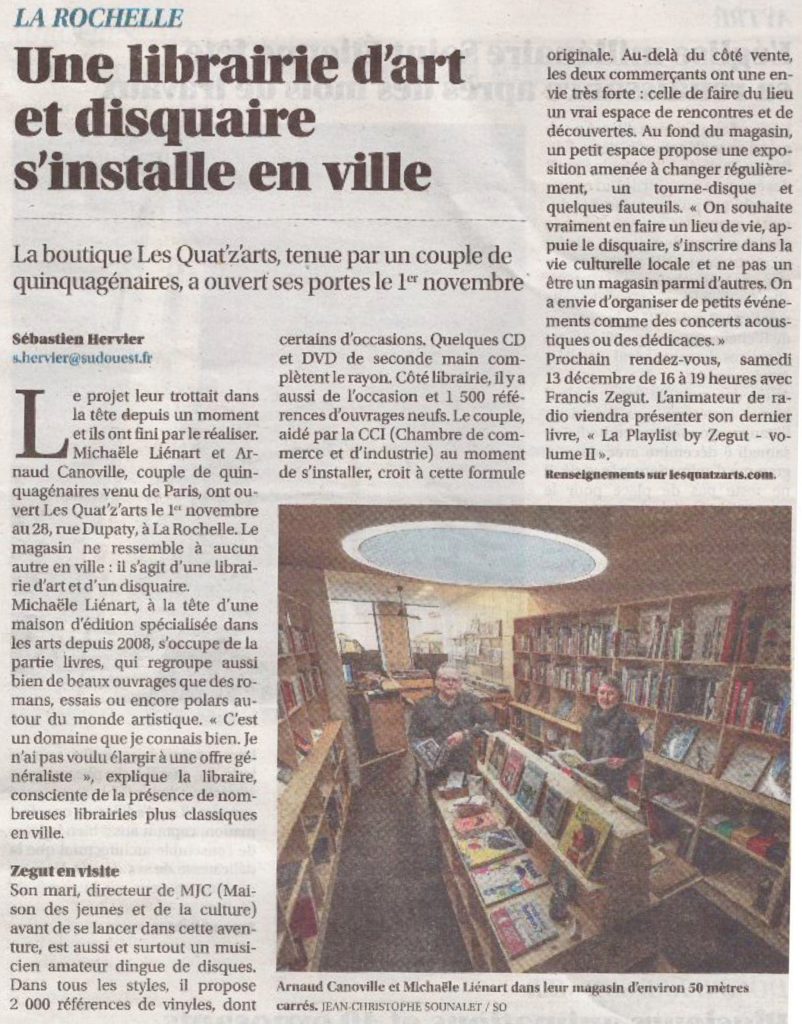 On en parle Radio Ici La Rochelle, « Vivre ici dans les deux Charentes », émission du 12/11/2025 Presse écrite Sud Ouest, rubrique « Culture », article de Sébastien Hervier du 26/11/25 Presse écrite Sud Ouest, version papier du jeudi 4 décembre 2025
